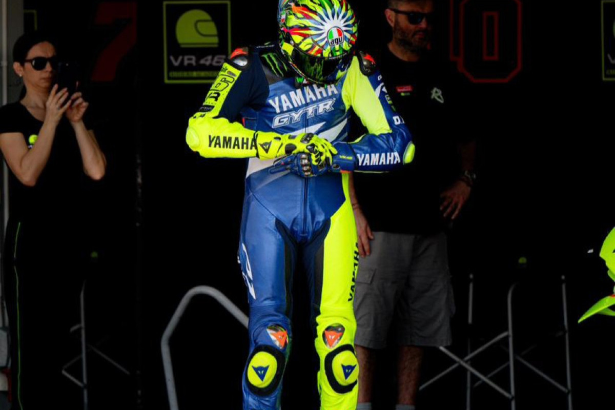 Rossi tidak hanya mengamati dari lintasan dan pit lane, tetapi juga langsung menjajal sirkuit dengan motor berwarna biru dengan aksen kuning fluo khasnya.