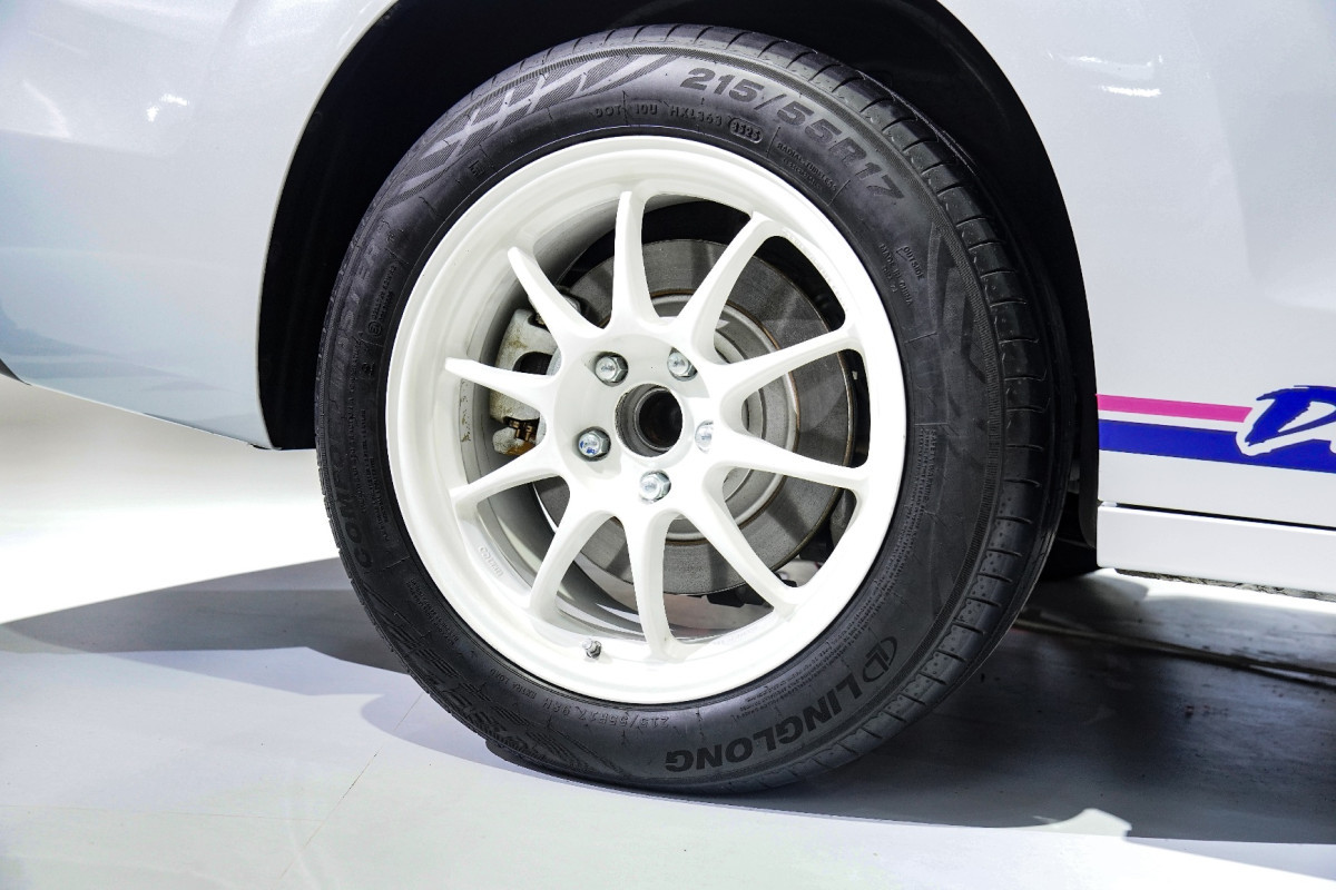 Pada bagian kaki-kaki, mobil ini menggunakan velg Enkei ES Tarmac berdiameter 17 inci dengan lebar 8 inci. Pemilihan velg ini tidak hanya memperhatikan estetika, tetapi juga kualitas, bobot, dan kekuatan yang telah teruji untuk penggunaan harian.